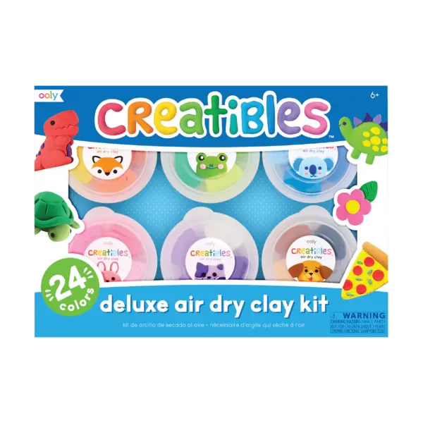Laissez libre cours à l'imagination des enfants avec le kit Creatibles Deluxe Air Dry Clay ! Ce kit de 24 couleurs d'argile séchant à l'air libre offre un arc-en-ciel d'argiles douces et faciles à modeler, parfaites pour créer des miniatures, des bijoux et d'autres projets créatifs de bricolage. Comme il n'est pas nécessaire de la cuire, cette pâte à modeler séchant à l'air permet aux enfants de se lancer sans difficulté dans des jeux pratiques et des découvertes artistiques : il suffit de la malaxer, de la modeler et de la laisser sécher naturellement ! Une fois sèche, la pâte peut être peinte ou décorée avec des feutres, ce qui offre encore plus de possibilités pour personnaliser chaque création. Cette pâte à modeler pour enfants stimule des heures de jeu imaginatif, qu'ils sculptent des animaux, conçoivent des bibelots ou créent des cadeaux uniques. Ce kit de pâte à modeler séchant à l'air libre est parfait pour les débutants et les artistes en herbe, et inspire la créativité et le plaisir tactile sans les salissures.