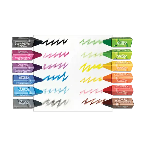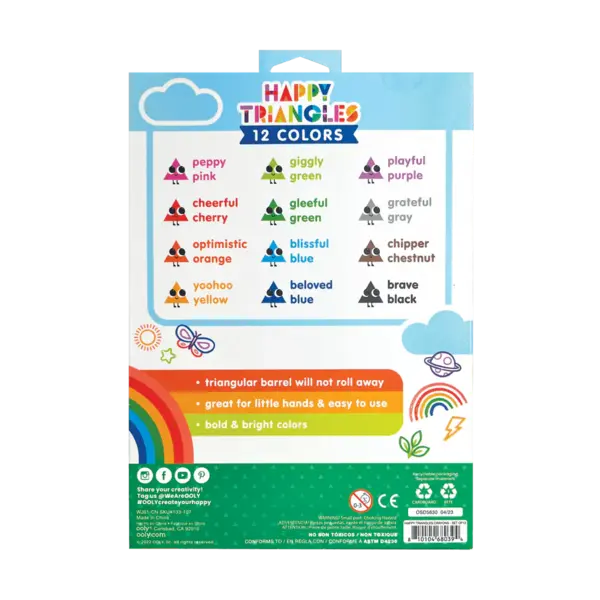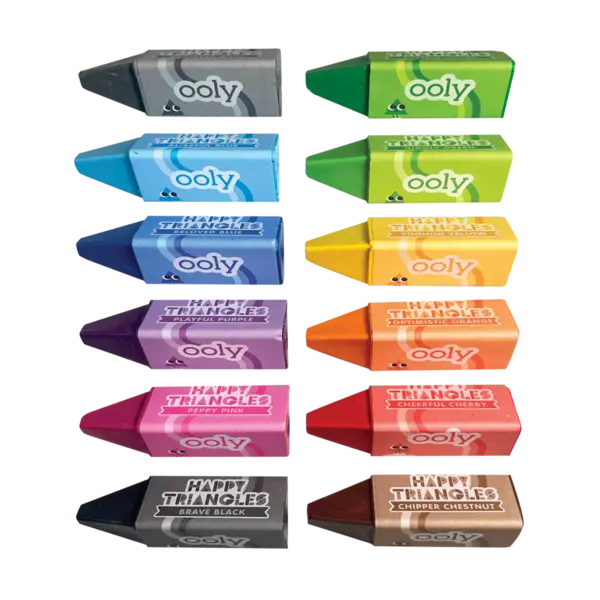 Caractéristiques de ce coffret Ooly | Happy Triangles Jumbo Crayons de couleur, lot de 12 :