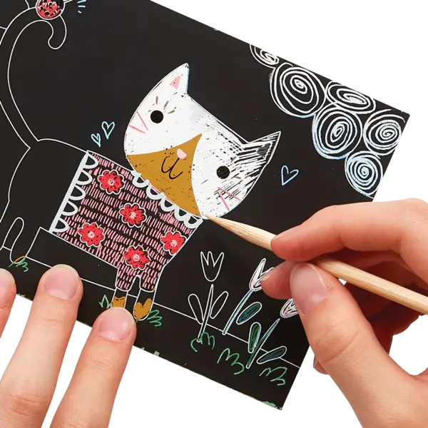 Lancez-vous dans le grattage, car les Cutie Cats n'attendent qu'à être révélés ! Ces adorables cartes à gratter sont remplies d'instructions faciles à suivre pour révéler des œuvres d'art arc-en-ciel inspirées des chats. Avec un format de 10 x 15 cm, ces mini-kits de grattage pour enfants sont parfaits pour les déplacements. Chaque kit contient non seulement 4 cartes illustrées adorables avec des chats, mais aussi 2 cartes vierges pour créer vos propres dessins, qui révèlent tous un arc-en-ciel de couleurs à l'aide du stylet en bois fourni.