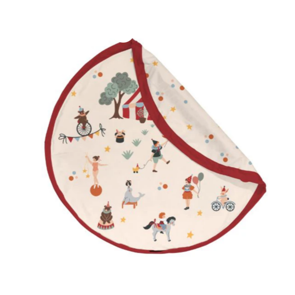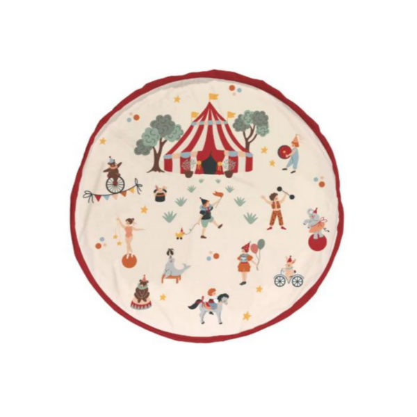 Avec ce joyeux sac de rangement et tapis de jeu 2 en 1, faites entrer la magie du cirque dans votre maison. Déplié, il se transforme en un grand tapis de jeu coloré avec un motif de cirque rempli de clowns, d'acrobates et d'animaux, idéal pour des heures de jeu. Le spectacle est terminé ? Tirez simplement sur la corde et transformez le tapis en un sac de rangement pratique dans lequel tous les jouets peuvent être rangés en un clin d'œil. Pratique, imaginatif et véritable accroche-regard dans toutes les chambres d'enfants !