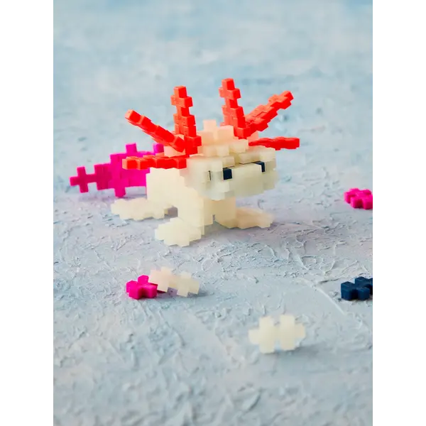 Rejoignez-nous et plongez sous la surface de l'eau, où vit toute une série de créatures fantastiques. Vous aurez peut-être la chance de nager aux côtés d'une créature vraiment unique et fascinante : l'axolotl. Cette salamandre aquatique est particulièrement appréciée des enfants en raison de son apparence singulière, et nous comprenons très bien pourquoi. Qui pourrait résister à une créature aussi mignonne ? Mais cet animal est bien plus qu'une simple créature mignonne : il est capable de régénérer ses propres membres. On dirait presque un super-héros, ce qui rend la construction de votre axolotl encore plus amusante. La direction que vous donnez à votre construction ne dépend que de vous, car chez Plus-Plus, il n'y a pas de règles ni de limites à ce que vous pouvez créer. Nous n'avons qu'un petit conseil : éteignez les lumières et laissez-vous envoûter par la magie !