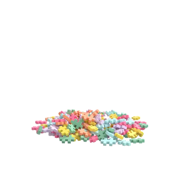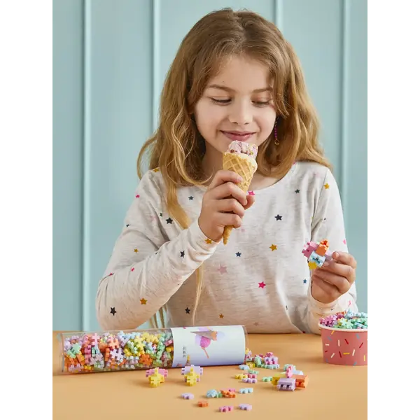 Couleurs incluses : rose pastel, jaune pastel, menthe, bleu ciel, lavande et papaye – une palette de couleurs ravissante et inspirante qui se marie à merveille avec tous les autres sets Plus-Plus.