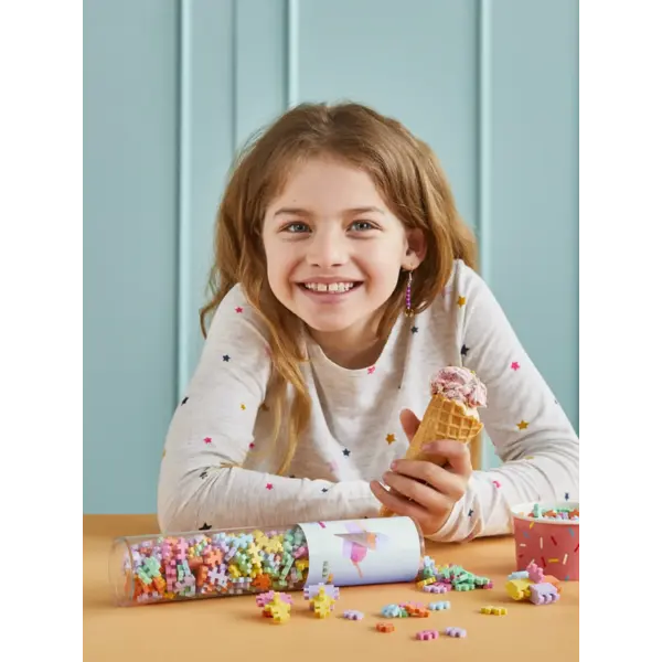 Idéal pour construire, bricoler ou offrir à quelqu'un qui aime les créations charmantes et colorées. Ce tube de jeu libre est livré sans instructions, laissant ainsi aux enfants toute la liberté de créer leurs propres « saveurs » et constructions ludiques. Et si vous êtes à la recherche de nouvelles idées, rendez-vous sur l'application Plus-Plus, choisissez le Gelato Mix et découvrez de délicieuses inspirations de construction spécialement conçues pour cette palette de couleurs de rêve.