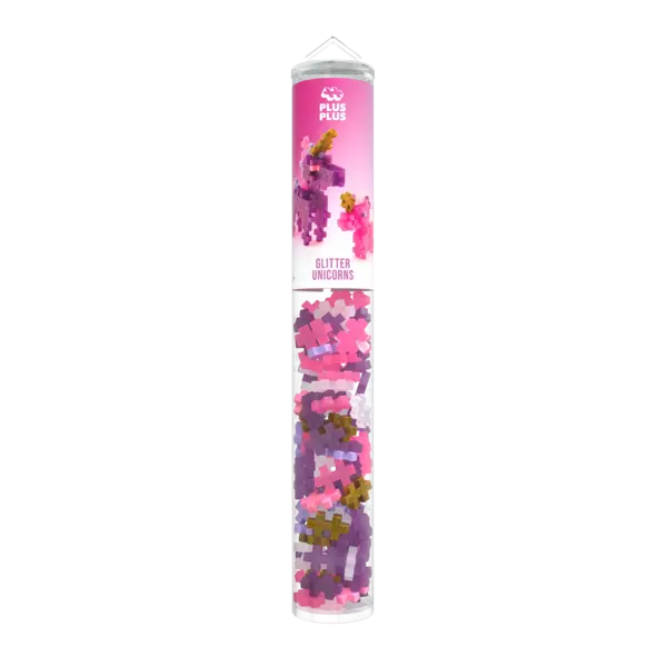 Le tube Glitter Unicorns contient 100 pièces Plus-Plus dans un tube réutilisable, idéal pour construire à la maison ou en déplacement. Vous pouvez reproduire le couple de licornes présenté dans le mode d'emploi, ou utiliser les couleurs pailletées pour imaginer quelque chose de tout à fait original. Composé de pièces durables et de haute qualité, cet ensemble garantit des heures de plaisir créatif et ludique.