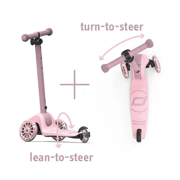 La trottinette Highwaykick 3S est idéale pour les enfants à partir de 3 ans ou mesurant entre 96 et 130 cm. La particularité de cette trottinette pour enfants réside dans son double système de direction : elle peut être pilotée aussi bien à l'aide du bouton de direction rotatif classique que par transfert de poids, ce qui permet aux enfants de la manœuvrer plus facilement et en toute sécurité. Grâce à son guidon réglable en hauteur sur trois positions, la trottinette grandit avec votre enfant et lui offre des années de plaisir. Le nouveau mécanisme de pliage permet de rabattre le guidon en un tour de main, ce qui rend la trottinette facile à ranger et à transporter de manière compacte.
