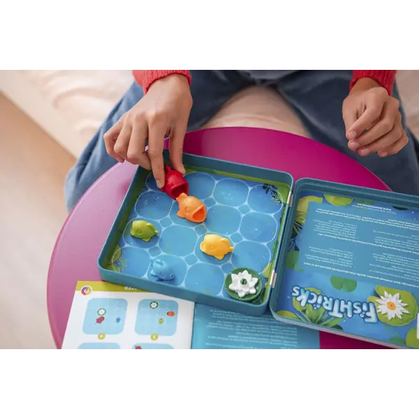 • Contenu : 5 poissons, 1 nénuphar, un livret de 48 défis et leurs solutions.