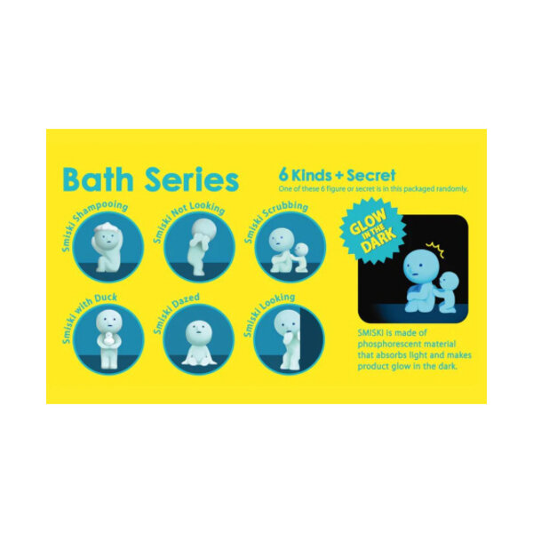 Les Smiski sont fabriqués à partir d'un matériau phosphorescent qui absorbe la lumière et fait s'illuminer la figurine dans l'obscurité. Ils sont vendus dans une « boîte aveugle » : la figurine est emballée au hasard dans une boîte fermée et aveugle. Vous ne savez donc jamais à l'avance quelle figurine vous obtiendrez de la série.