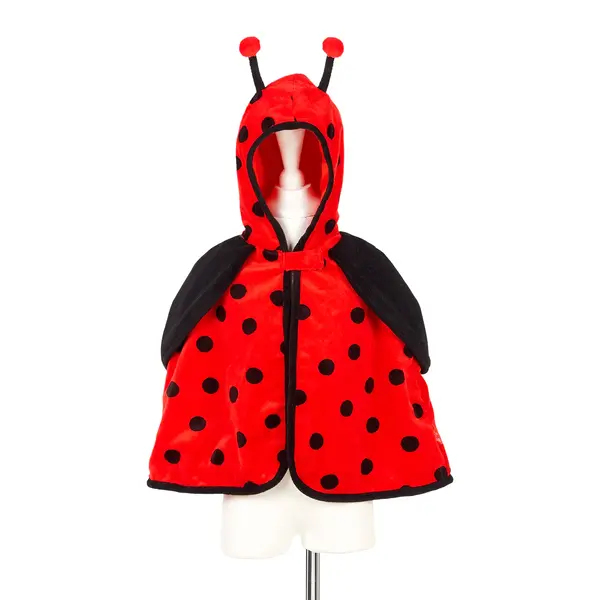 Cape coccinelle en velours rouge. La longueur de la cape est de 36 cm.