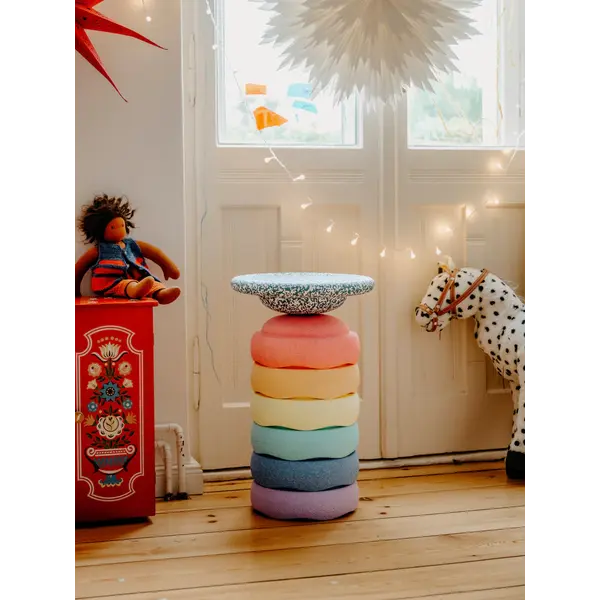 Ce set Stapelstein Blush Special Rainbow Set Pastel se compose de 7 pièces dans différentes couleurs gaies. Ces blocs empilables apportent du mouvement et de la créativité dans la vie quotidienne des enfants. Ils peuvent ainsi s'asseoir avec et sur ces blocs empilables, bouger, jouer, faire de l'équilibre, créer un parcours, sauter dessus et à travers, et bien plus encore... Stapelstein développe des jouets ouverts à toutes les interprétations pour tous les âges. Les blocs empilables Stapelstein sont fabriqués en EPP, une mousse expansée solide à base de polypropylène. Ils sont produits en Allemagne de manière 100 % neutre pour le climat et sont recyclables.