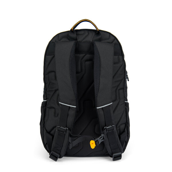 Ce grand sac à dos spacieux et pratique est doté de deux compartiments séparés et d'une petite poche frontale où vous pouvez tout ranger soigneusement. Idéal à partir de la 3e année. En outre, il y a un compartiment de rangement séparé et rembourré pour votre ordinateur portable. Les deux poches latérales élastiques peuvent facilement accueillir une bouteille, une canette ou d'autres petits objets. Pour un plus grand confort de portage, le panneau arrière et les bretelles réglables sont rembourrés. Des bandes réfléchissantes subtiles assurent une sécurité accrue. Le fond étant renforcé, le sac à dos ne craint pas les chocs. Très pratique pour une journée entière sur la route ou à l'école !