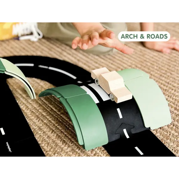 Les Arches sont fabriqués en Europe à partir de plastique recyclé. Ils sont solides, sûrs et conçus pour offrir des années de plaisir. Comme nous utilisons des matériaux recyclés, de légères variations de couleur peuvent apparaître – un rappel ludique que la durabilité rend chaque ensemble unique.
